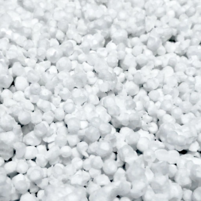 Процесс производства дробленного ППС начинается с нагревания полистирольных шариков до температуры выше 80°c и воздействие на них давлением пара газа изопентана, что позволяет вспенить полистирол в гранулы. После этого их высушивают и дают им охладиться.